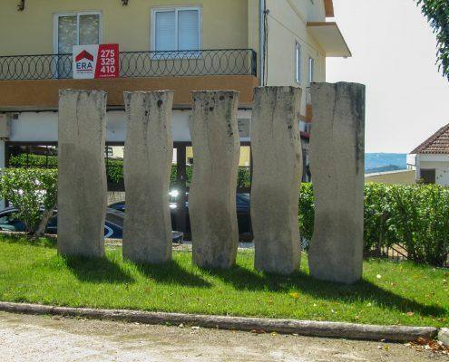 Descrição/TemaConjunto escultórico de arte contemporânea, de cariz minimalista. Desenvolve-se numa composição de cinco elementos, despojados mas de grande equilíbrio formal, alinhados e a elevam-se do solo em elegantes linhas curvas, transmitindo um certo movimento, este também promovido pelo jogo das sombras projetadas, que se movimentam consoante a incidência da luz solar.